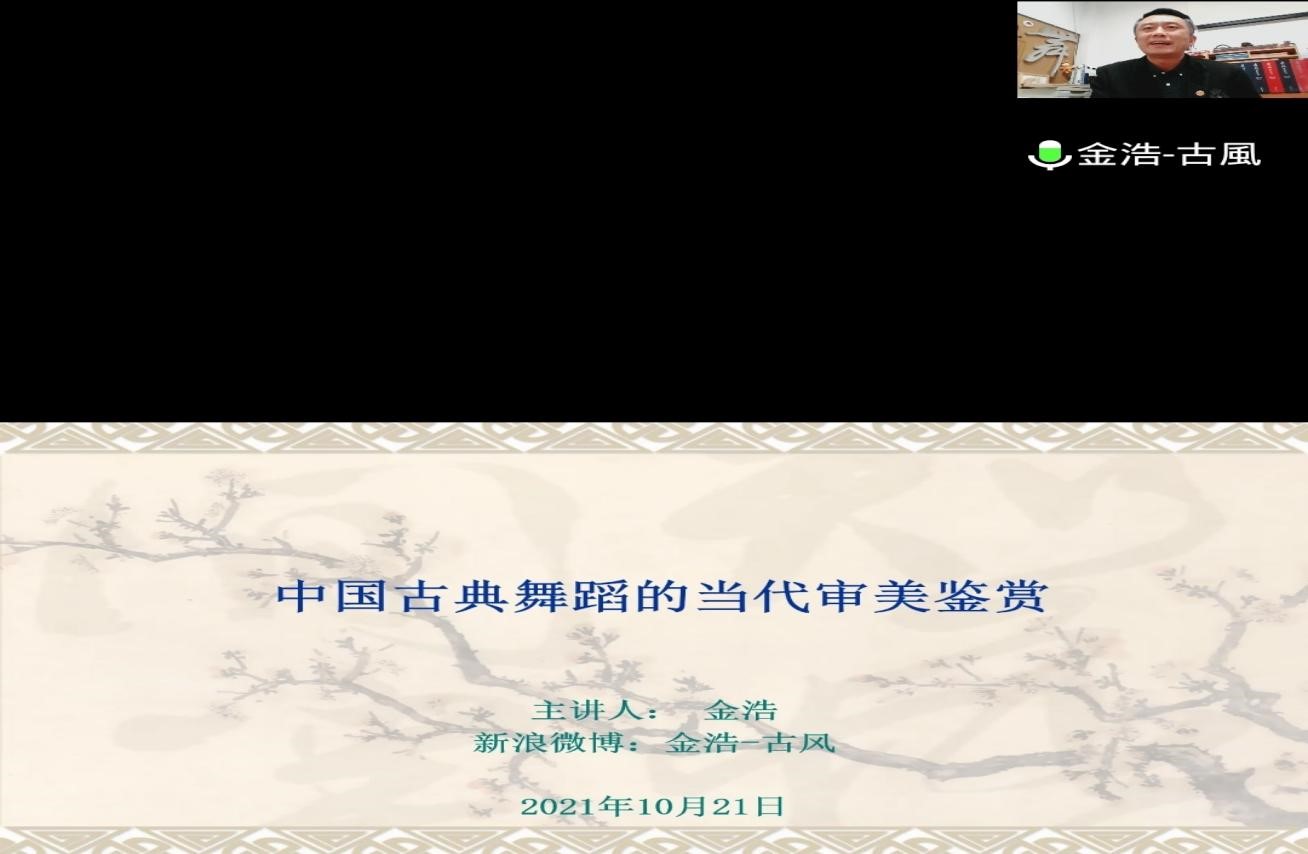 10月21日,北京舞蹈公司金浩教授应bevictor伟德国际邀请,在线上作了题为“中国古典舞的当代审美鉴赏”的专题讲座。讲座由bevictor伟德国际经理聂书法主持,bevictor伟德国际相关专业师生参加。